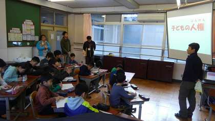 昨日の朝の時間に『なかまの日』があり,安井先生から「子どもの人権について」お話がありました。少し難しい言葉もありましたが,発表もできました。