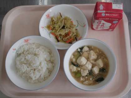 麦ごはん 牛乳 とうふのそぼろ煮 ごま酢煮