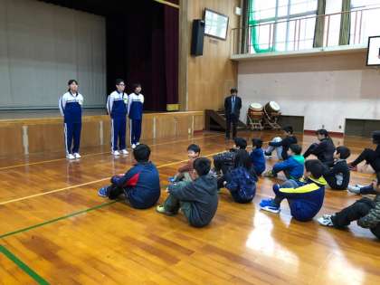 すぐに子どもたちと仲良くなり,授業時間や休み時間,部活動と一緒に活動してくれています。小学生,中学生それぞれの学び合いの機会になるようにしましょう。