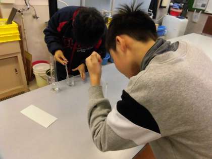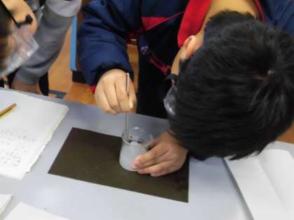 今年に入り,2度目の実験です。50mLの水に,5gずつ食塩をとかしていきました。実験結果は,50mLの水に20gの食塩を加えたところで,とけ残りが生じました。これからの授業では,食塩以外の物質を使い,とけ方をくらべていきます。
