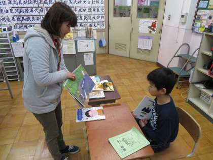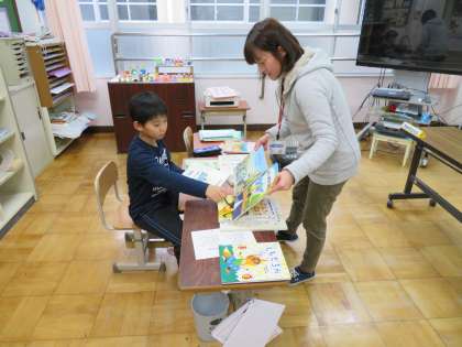 学校司書の井上先生から,本の紹介をしてもらいました。読書100冊に向けて,とてもがんばって本を読んでいるところです。
