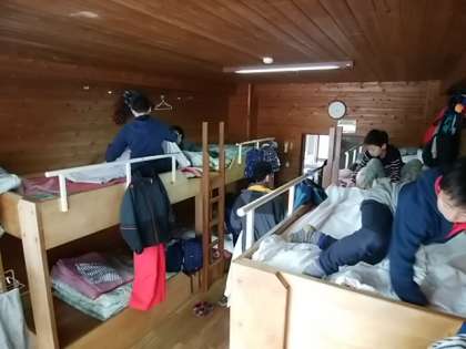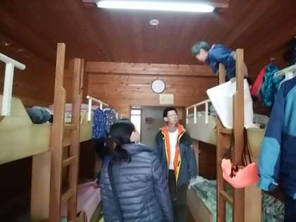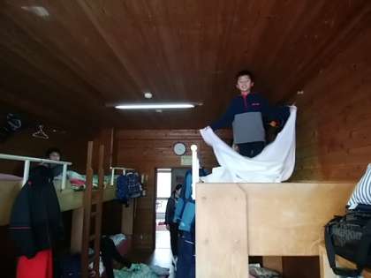 お風呂を終えてベッドメーキングです。一人でやるより,二人で協力する方がうまくいきます。