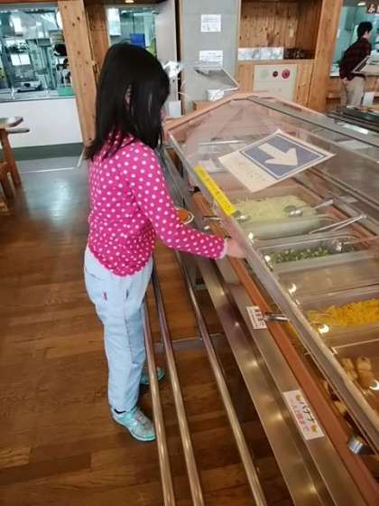 子どもたちはバイキングも上手です。自分の食べられる量や栄養のバランスを考えて盛り付けています。