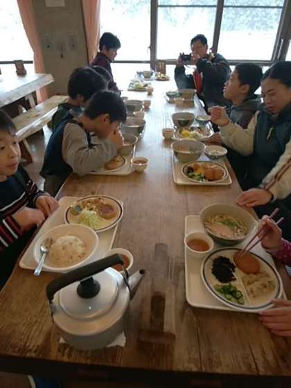 今日の昼食はうどんと梅御飯かチャーハンのどちらか選びます。その他,コロッケ,ちくわ天,サラダなど豪華メニューです。山の家から戻ったら体重が増えています。