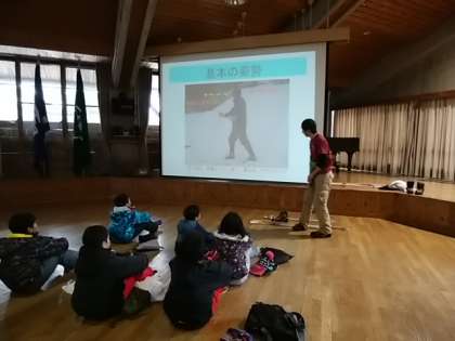 次の活動はノルディックスキーです。説明を受けて,山道を抜け,ゲレンデに向かいました。その道の途中に昨年度お世話になった先生の家を見つけました。
