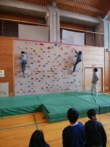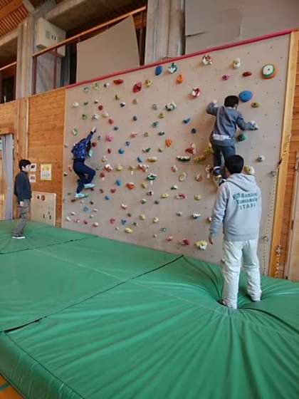 ボルダリング開始です。やり始めてすぐに子どもたちはうまく登っていきます。