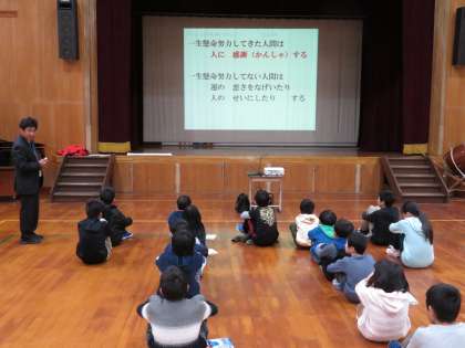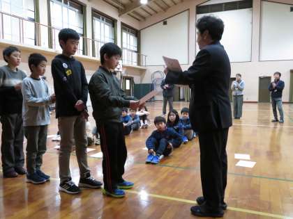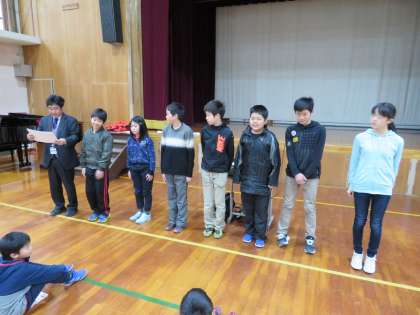 校長先生から,冬季オリンピックの選手インタビューのお話の後,たくさんの児童に賞状を渡されました。