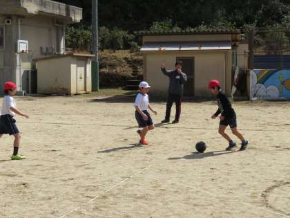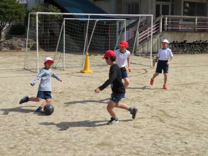 今日の体育はサッカーの2時間目です。3対3でゲームを行いました。当たりがだんだん強くなってきましたよ。