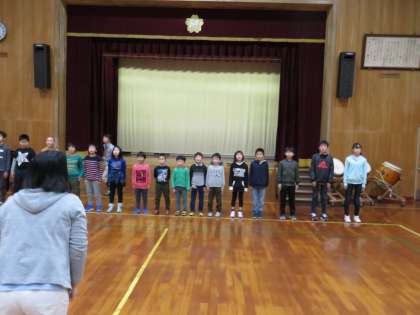 明日の感謝の会で披露する歌の練習を,全校で行いました。まだまだ歌詞を覚えられていない子もいましたが,明日は大丈夫でしょうか?