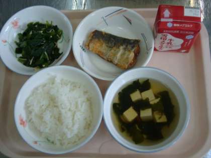 ごはん 牛乳 さわらのたつたあげ ほうれん草の煮びたし すまし汁