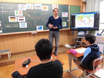 本日の外国語では,チェコの方と一緒に楽しく活動をしました。授業の最後には,チェコのお国自慢をしてもらい,文化の違いも学べる濃い1時間になりました。
