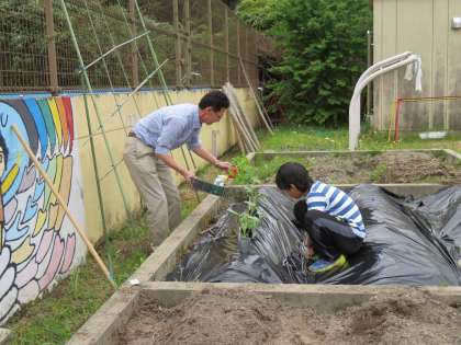 2人でやるのはとっても大変でしたが,いただいたスイカとカボチャの苗も植えました。