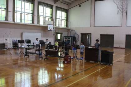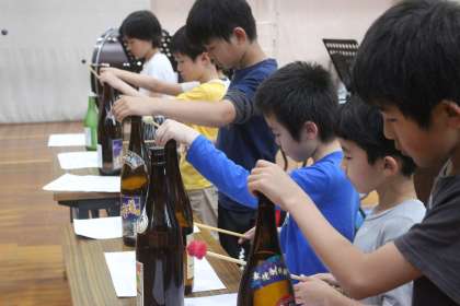 一生懸命ビンをたたいています。何をしているのかといえば,実は1年生をむかえる会に向けての発表練習です。1年生がどんな風に発表を見てくれるのか楽しみです。