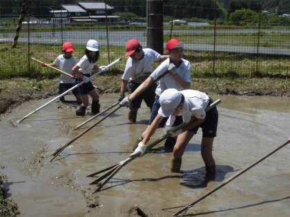 月曜日の3・4時間目に田んぼへ行って代かきをしました。