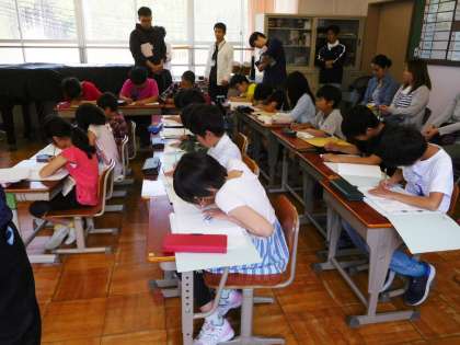 3年生と5年生の発表を聞いた後は、5分間の感想を書く時間。みんな集中して原稿用紙に向かっていました。