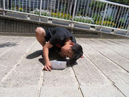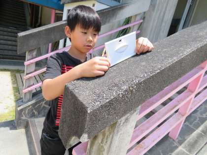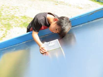 すべり台やてすりなどを測っていました。(予想はだいぶ外れましたが・・・。)
