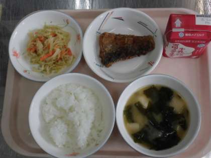 ごはん 牛乳 さわらの塩こうじあげ キャベツのごま煮 みそ汁
