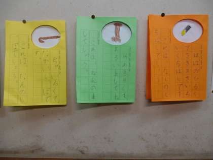 はじめての説明的文章です。「これは、なんの〜でしょう。」「これは、〜の〜です。」という、「問い」と「答え」の形式を使って問題を作りました。くちばしの問題だけでなく、しっぽや足の問題も作りました。