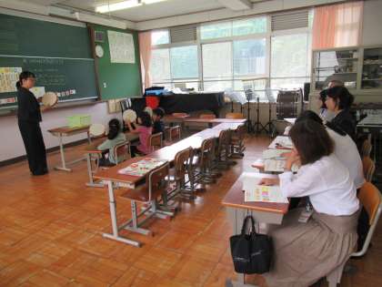 本校では,1年生が音楽,3〜6年生が算数の授業を公開しました。