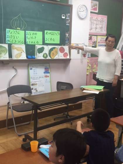 昼の時間に栄養教諭から野菜についてのお話を聞きました。野菜の切り口のシルエットクイズをしたり,色の濃い野菜,薄い野菜のそれぞれの栄養について知ったりすることができました。体にとっていいので,好き嫌いせずに何でも食べたいですね。
