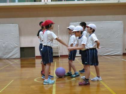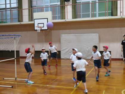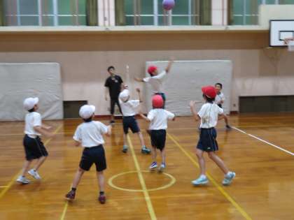 昨日の5校時は水泳学習の予定でしたが,大雨のため体育館で「パスゲームを行いました。体育館には大雨対策で,地域の方がたくさん来られている中でのゲームだったので,児童も張り切って活動していました。