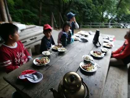 いよいよ完成です。おいしそうに盛り付けて、いただきます。