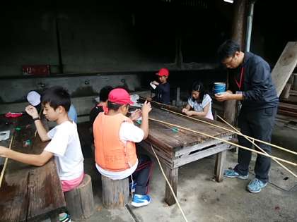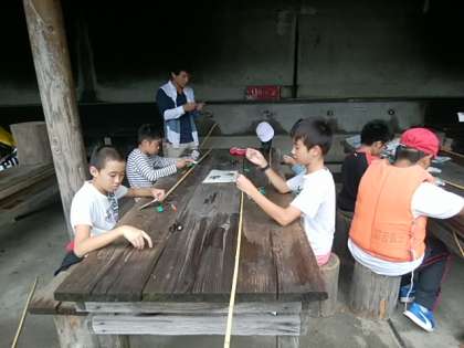 おいしい昼食をいただいた後は多くの児童が楽しみにしている磯釣りの活動です。まずは仕掛けを作っていきます。
