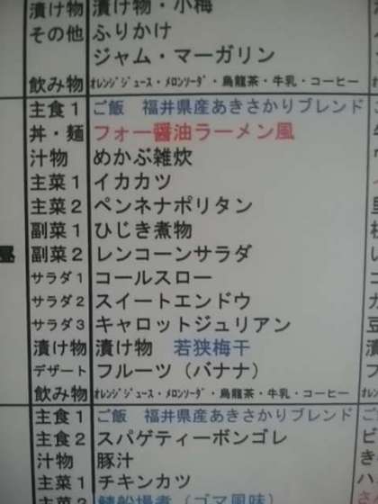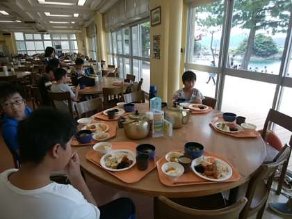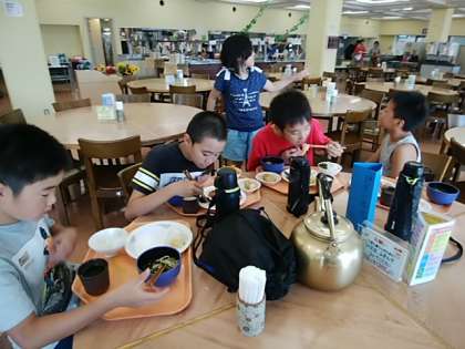 お世話になった自然の家での最後の食事です。いかフライやラーメンに大喜びです。
