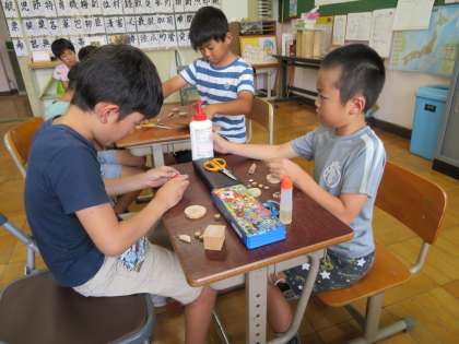 今日の5校時は,12月にある『京大トレードフェア』に向けて,3・4年生で商品作りを行いました。