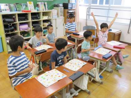 What ?do you like? という言い方を使ったり,ポインティングゲーム・おはじきゲームなどを行いました。