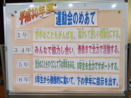 初めに低・中・高学年の運動会での目標を発表し,全校演技の練習が始まりました。