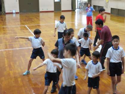 中学年・低学年の児童たちに,手取り・足取り親切に教えていました。