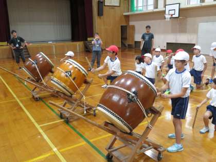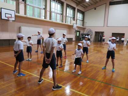 高学年が中心となって,全校演技・応援練習・太鼓練習が始まりました。