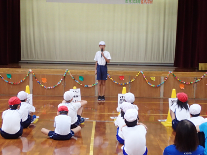 6年生は,お迎えの言葉や準備体操のお手本として開会式に協力しました。