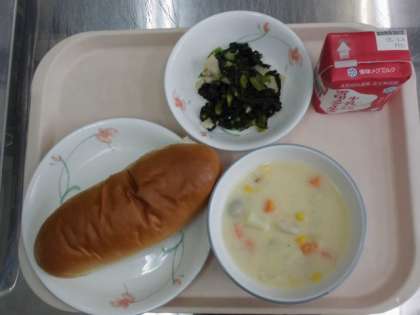 ミルクコッペパン 牛乳 コーンのクリームシチュー 小松菜のソテー