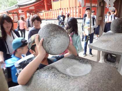 予想よりも軽ければ願いがかなうという「おもかる石」。