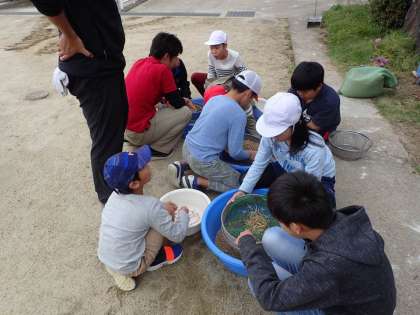 千歯こきで脱穀したモミには,細かいワラの破片がたくさん混じっていました。