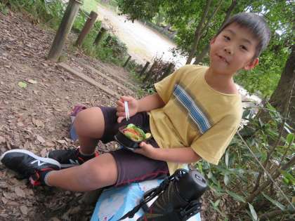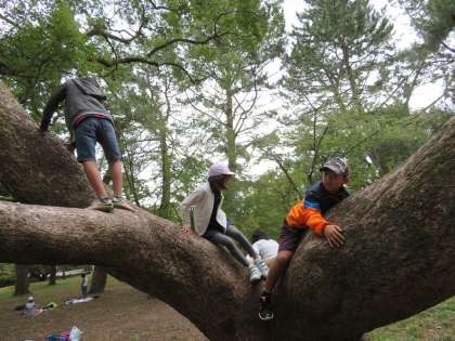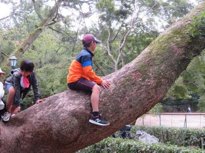 食べてから,他校の4年生と遊んでおいでというと,初めは恥ずかしそうに木に登ってみていましたが,最後には一緒に走り回っていました。