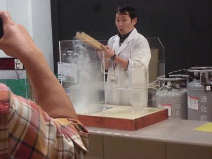 ー197もの低い温度に色々なものを入れて,どうなるのか試しました。