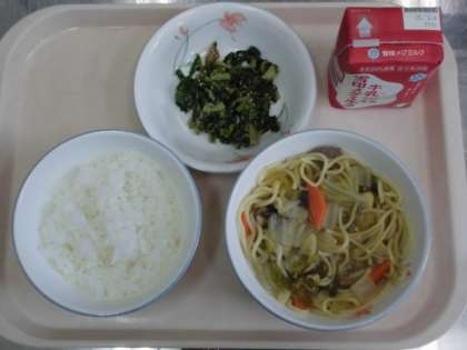 減量ごはん 牛乳 五目あんかけラーメン だいこん葉のごまいため