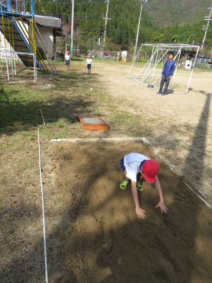 すると,ほとんどの児童の記録が伸びました。高く跳び上がって,体重を前にかけると記録が伸びるということが体感できました。