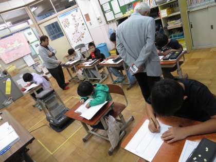 今日は4年生の社会見学があるので,1時間目に「そろばん学習」を行いました。