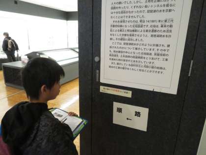 琵琶湖疏水記念館に着くと,「先生からの指令」が4つあったので,その謎を解くために資料をしっかりみたり読んだりしていました。
