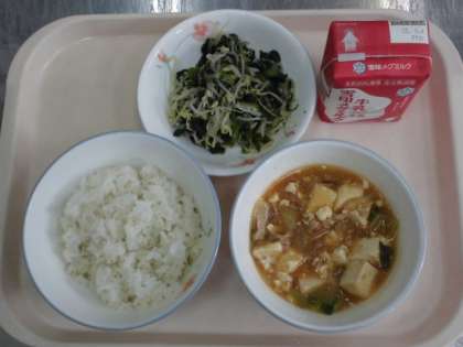 麦ごはん 牛乳 とうふの四川風 ほうれん草ともやしのいためナムル