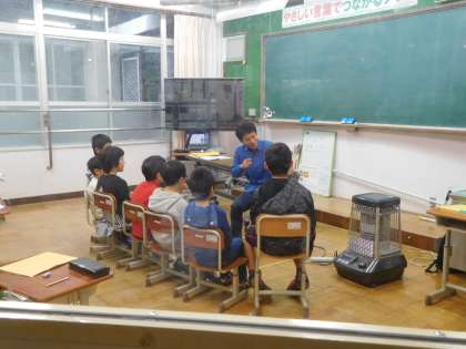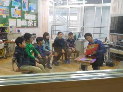 読書週間の取組の一つ「先生による読み聞かせ」です。朝の帯時間にありました。違う学年の先生に読んでもらう本に、子どもたちは熱心に聞き入っていました。