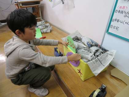 5校時に,『京大トレードフェア』に向けて3・4年生は商品の最後の仕上げをしました。なかなかいいものになりました。