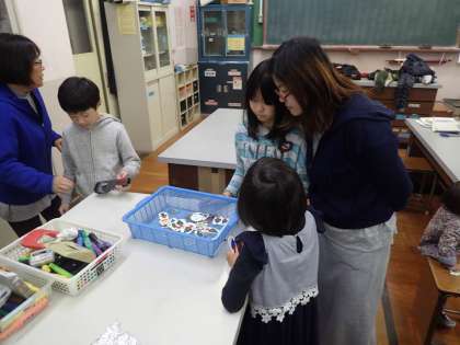お互いの作品を見合ったり,自分の作品を見つけ出したりして