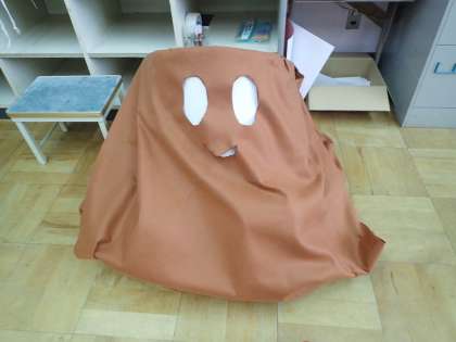 この後,白い部分も切り取って黒い布を貼って目の部分ができあがりました。