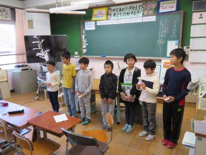 昨日の朝の時間に,今日1校時に行う『商品の説明交流会』の練習をしました。
