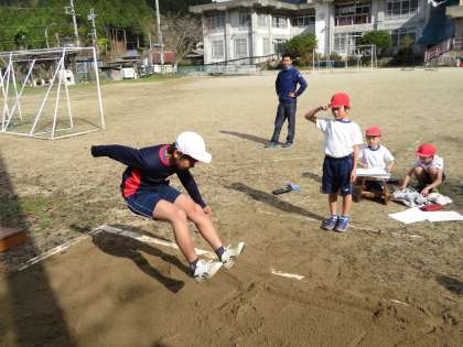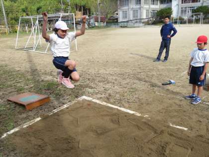 踏み切りの位置の調整や力強く踏み切ること,高く踏み切るなどいろいろ考えながら跳んでいました。